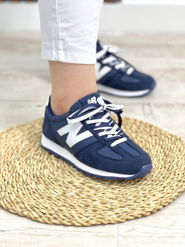 کتونی زنانه سه خط سفید سرمه ای SHER جنس رویه فومی و پارچه سوزنی