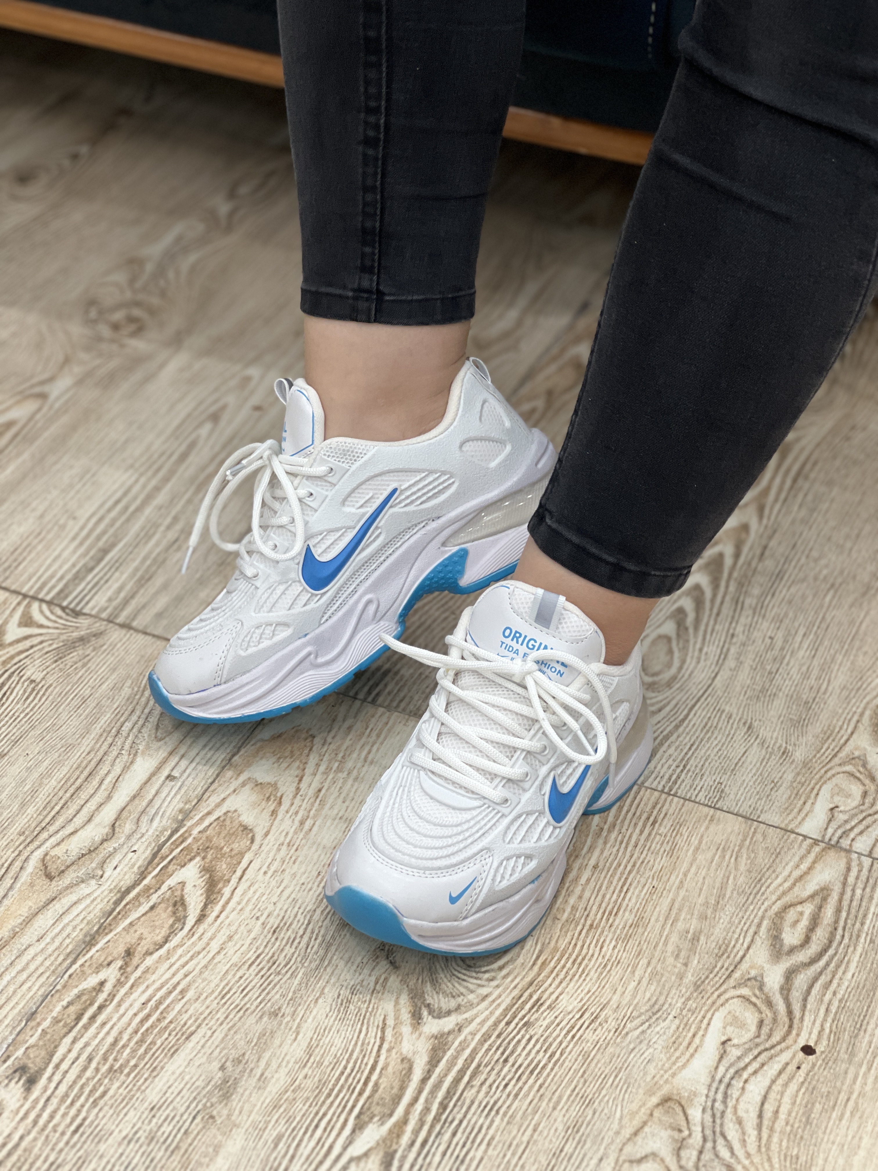 دستهبندی: زنانهرنگ: سفیدآبیسایز بندی: 37 / 38 / 39 / 40جنس: رویه فومی و پارچه سوزنیلژ کتونی: 5 سـانت