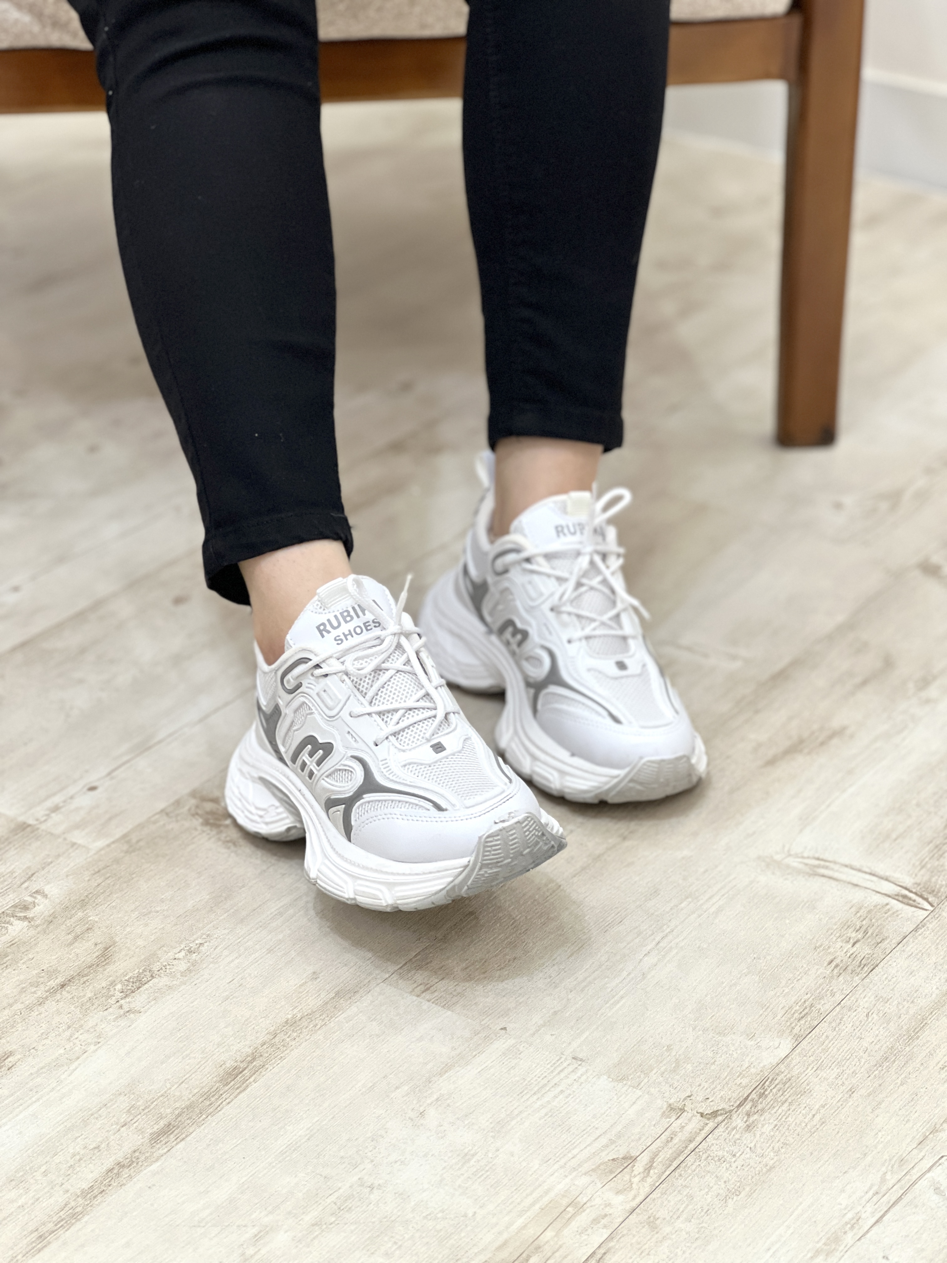 دستهبندی: زنانهرنگ: سـفیدطوسـیسایزبندی: 37 / 38 / 39 / 40جنس رویه: پارچخ سوزنی و فومیزیره: پی یو PUلژ کتونی : 5 سـانتنمایش بیشتر